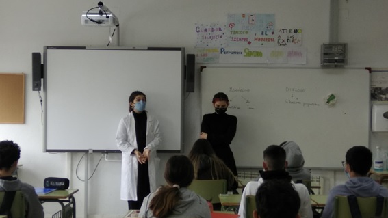 Las profesoras y alumnas, caracterizadas de ellas, han pasado a contar su historia por las aulas de 1º y 2º de ESO. El alumnado se ha mostrado receptivo y participativo y hemos pasado muy buen rato.